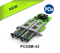 PC05M-42 Dual M.2 NVMe PCIe Expansion Adapter. Dual NVMe Expansion • Tool-Free Service • x2 + x2 lane allocation