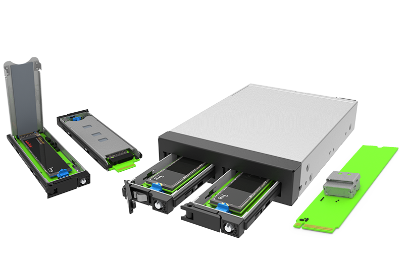 Turn one M.2 slot into a serviceable, front-access dual-NVMe bay