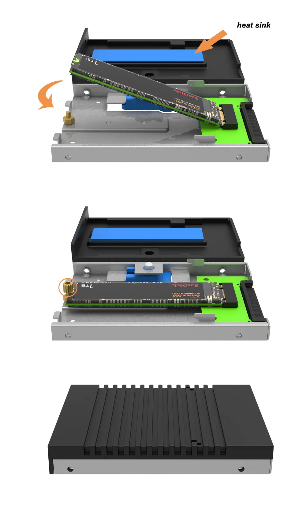 3. Protection and Cooling: The aluminum chassis and heat sink provide robust protection and efficient cooling for the SSD, prolonging its lifespan.