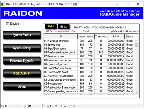 STATUSGUARD GUI and drive S.M.A.R.T monitoring