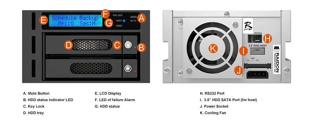 The iR2622S features a new RAID 1 scheduling backup function. Users can use the RAIDON STATUSGUARD GUI software to set up a time schedule for backups, which can help to protect disk array from corruption and system failure. This function can also help to extend the life cycle of drives.