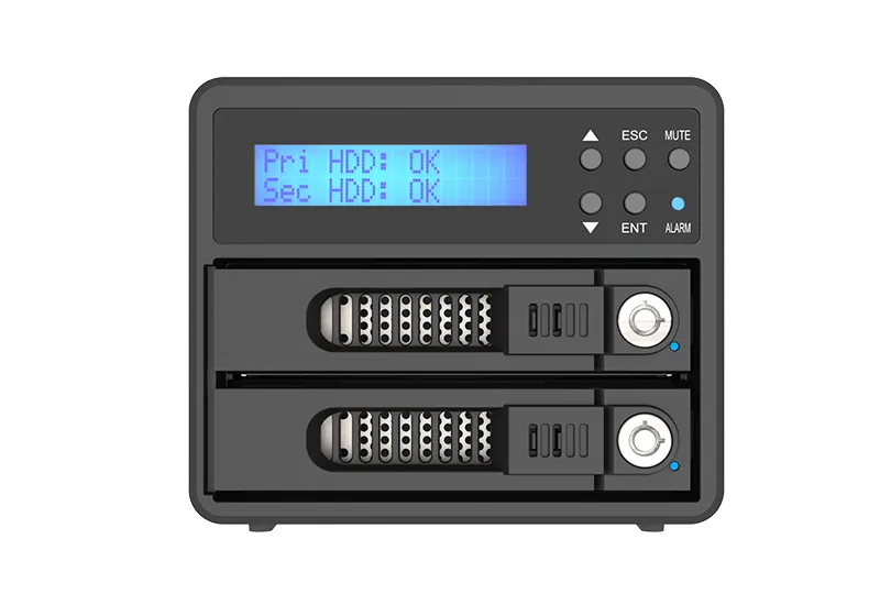 4. An LCD display providing immediate updates on RAID mode status and drive conditions.