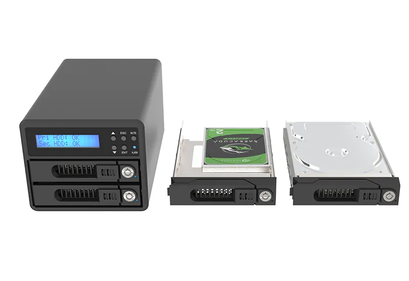 4. An LCD display providing immediate updates on RAID mode status and drive conditions.