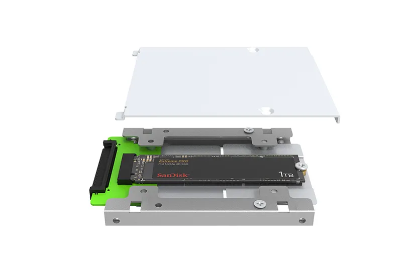 2. M.2 to U.2 Conversion Capability: Facilitates the transformation of M.2 NVMe SSDs into a 2.5" NVMe SSD, maintaining a sleek 9.5mm thin form factor.