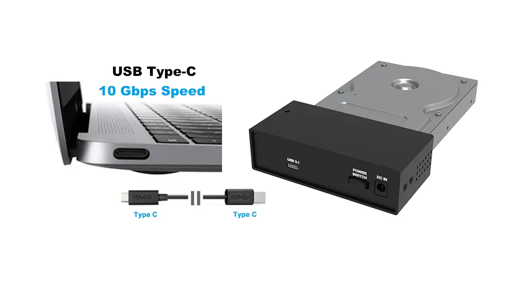 USB 3.2 Gen 2 Type-C, Hot-Swappable Drive
